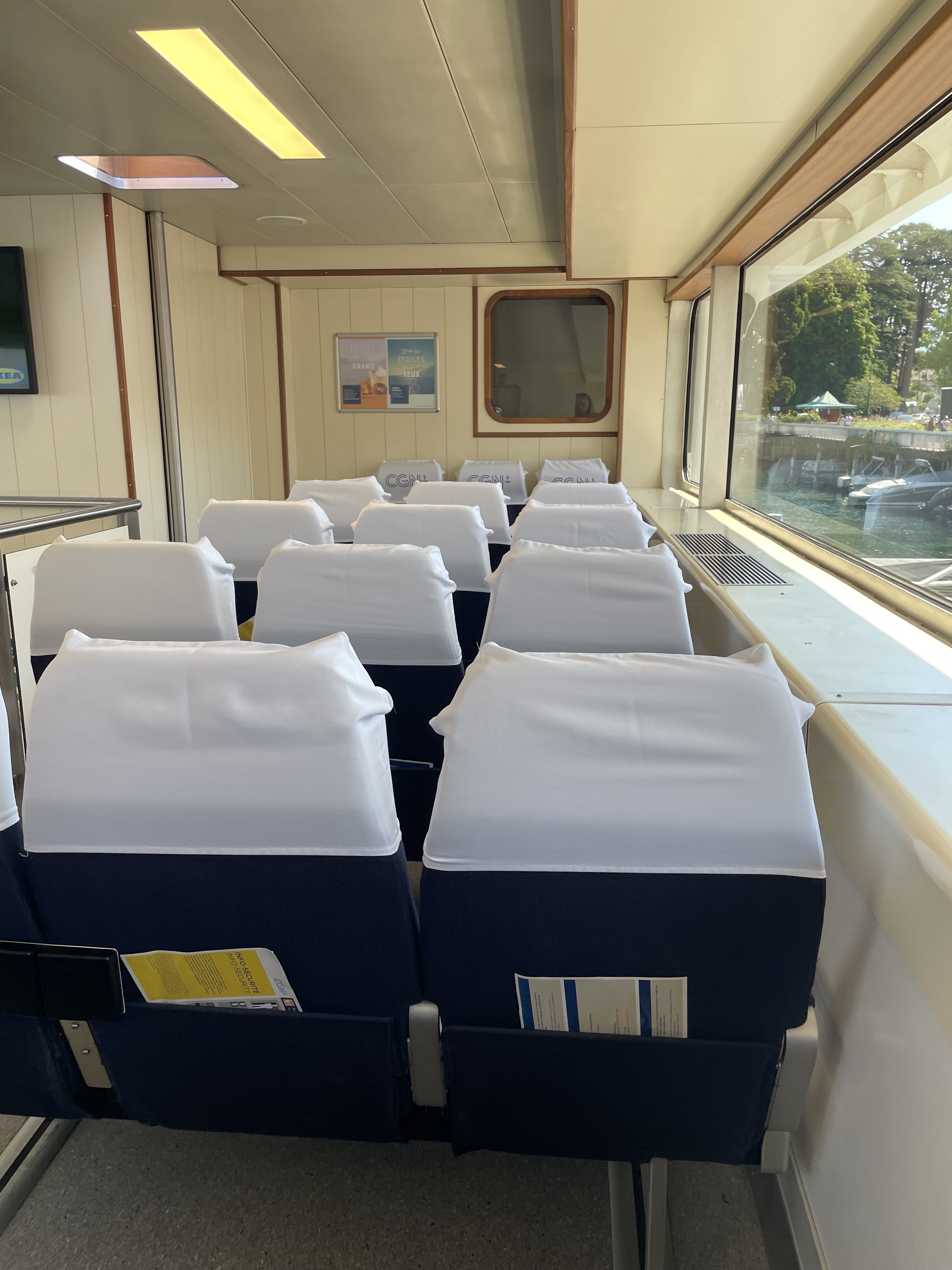 CGN —> accès PMR en fauteuil roulant électrique: facile! Super navette pour faire evian lausanne accès embarquement et débarquement facile ( mise a disposition du rampe) .a bord espace confortable pour le fauteuil au niveau des portes - vue sur le lac.