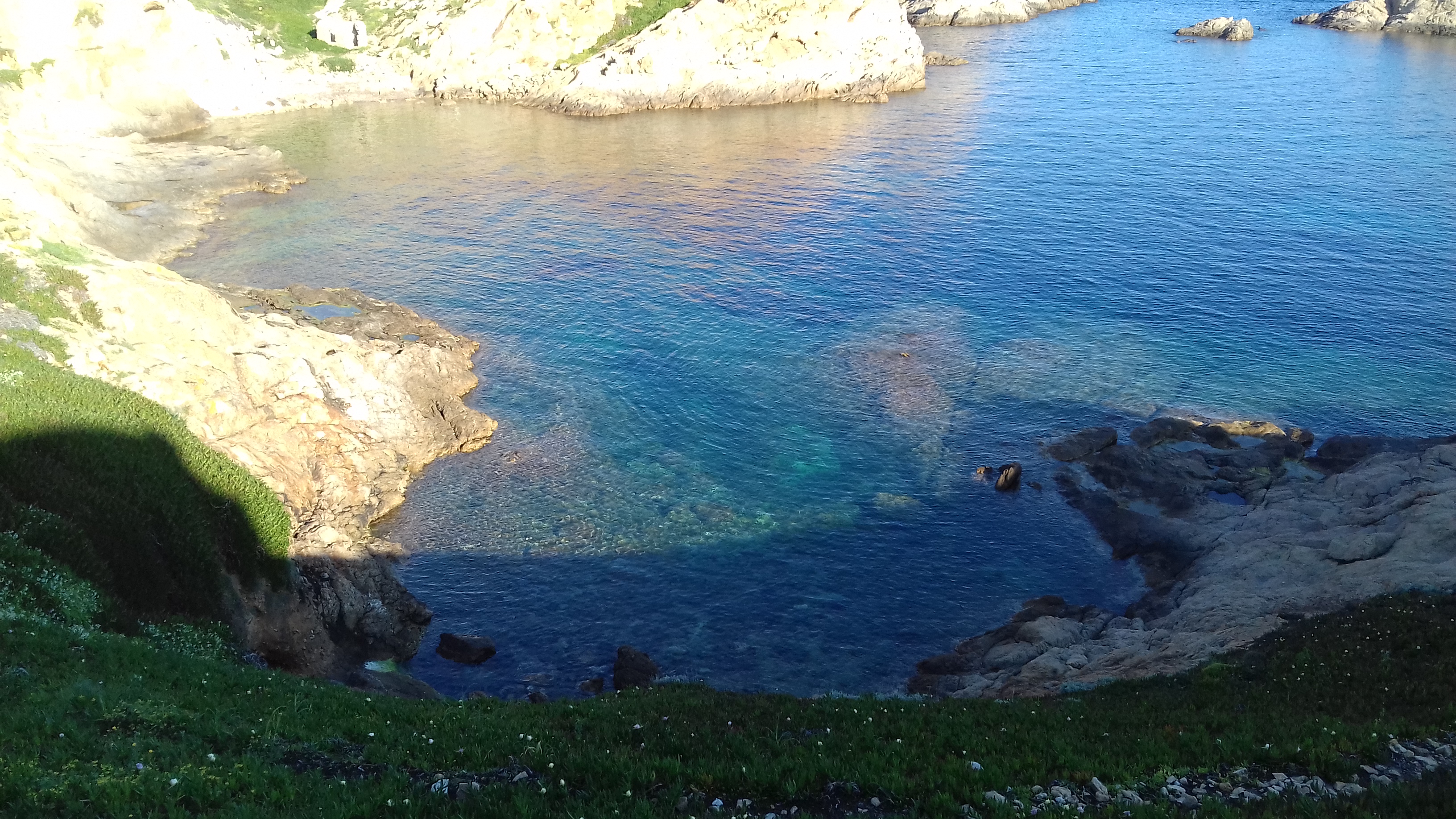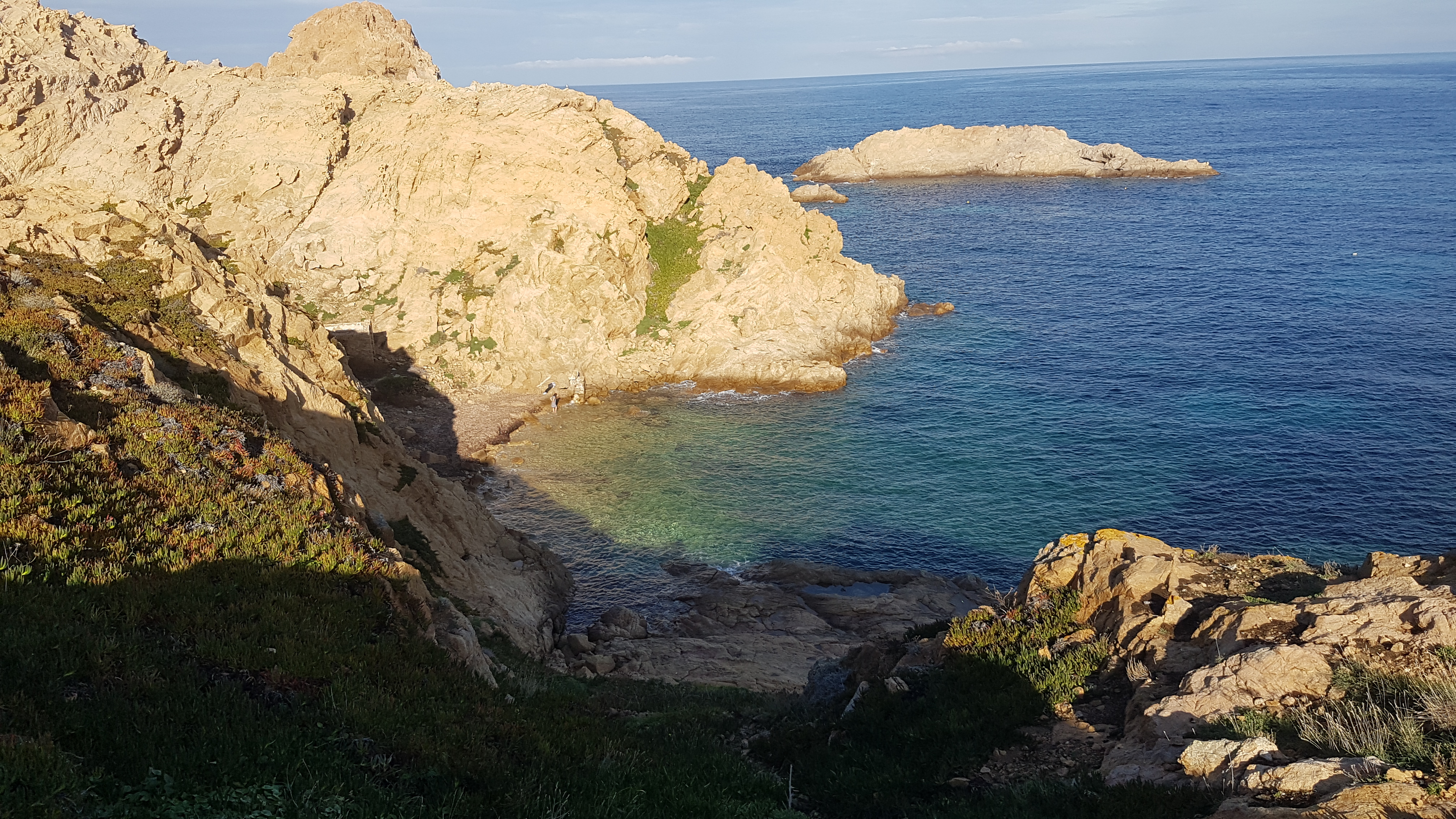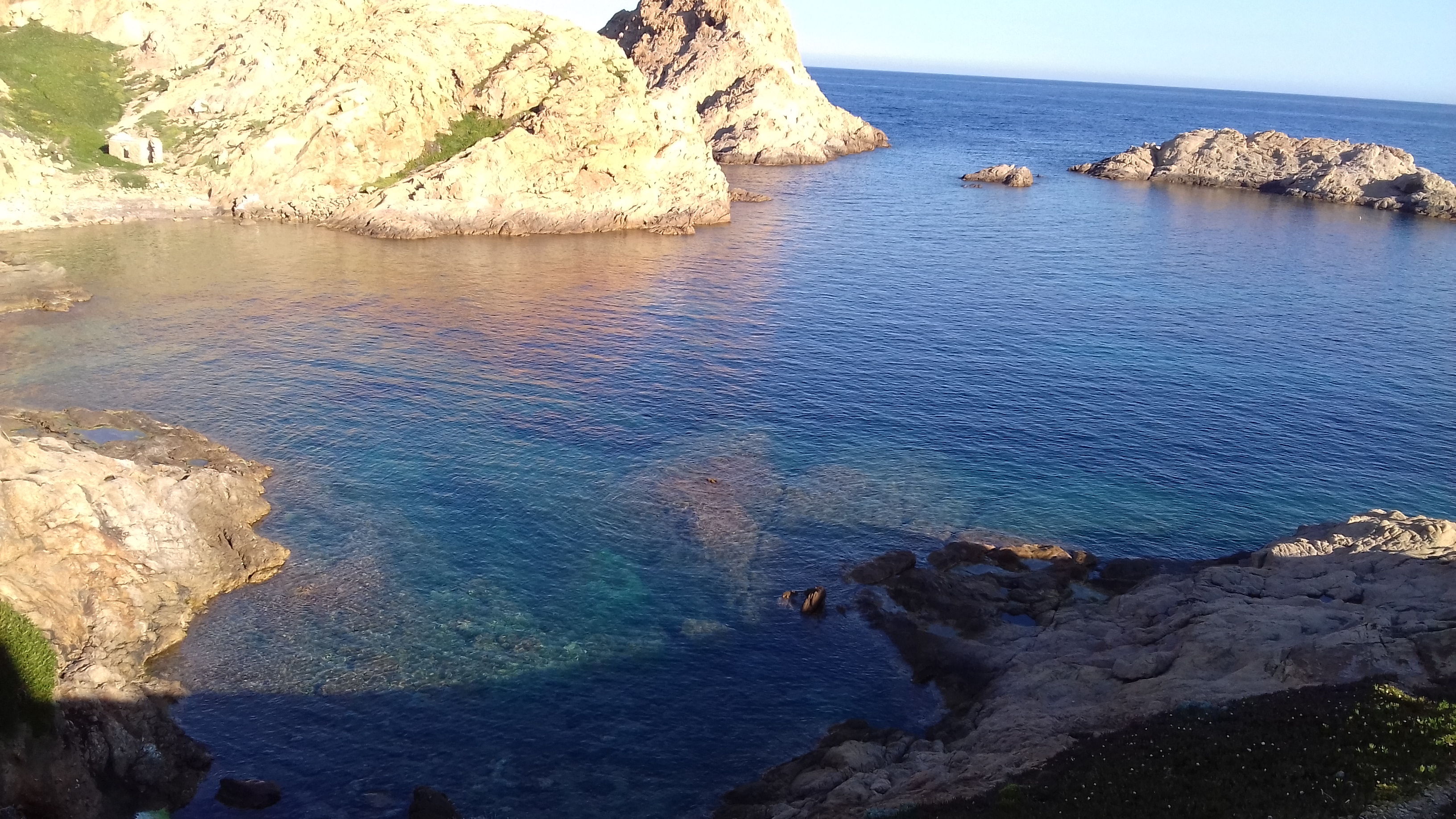 Couleurs de la mer et du rocher. Différents courants créent trois types de mer différents. Petit port à l'eau très transparente. Couchers de soleil de carte postale...