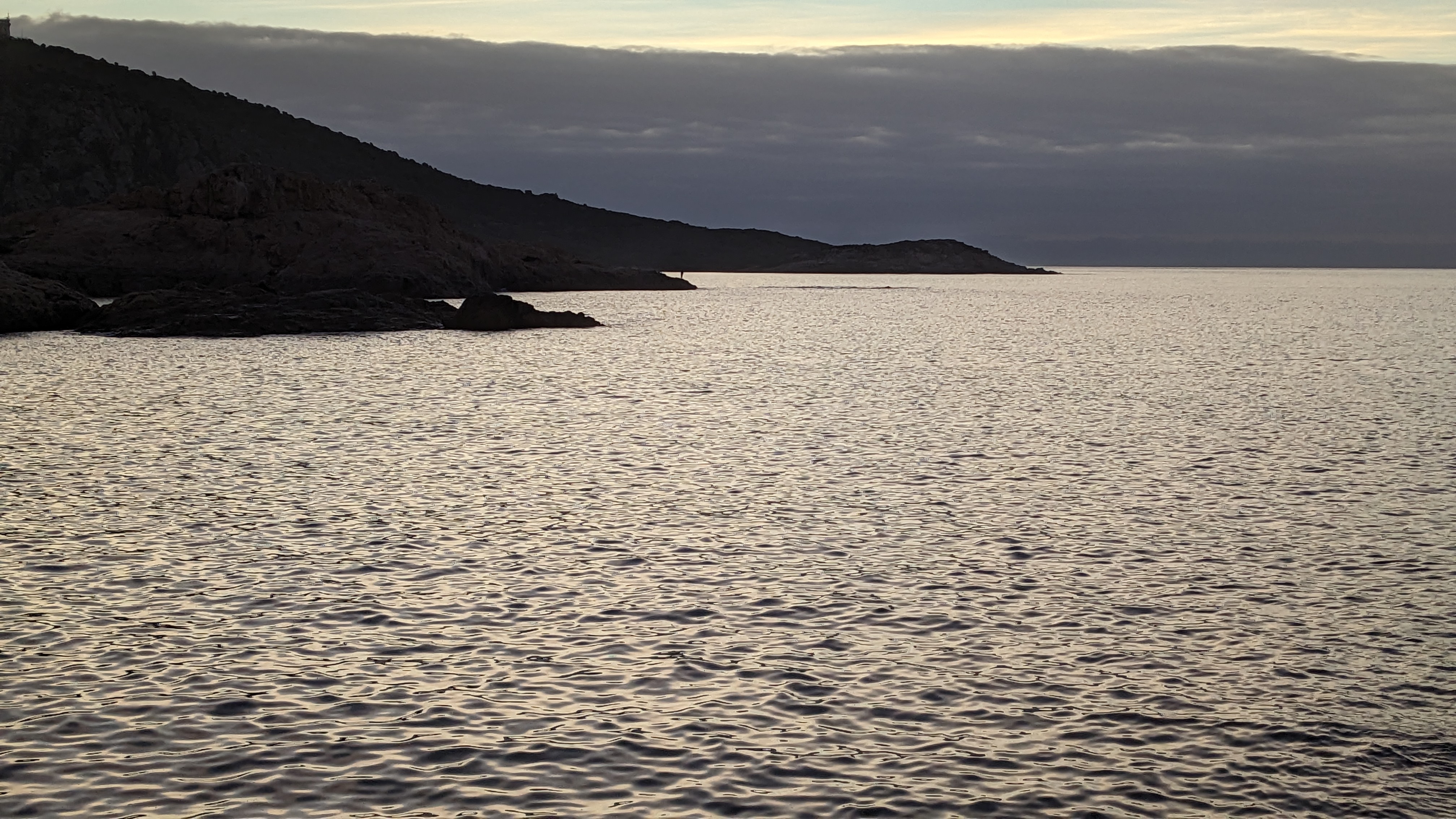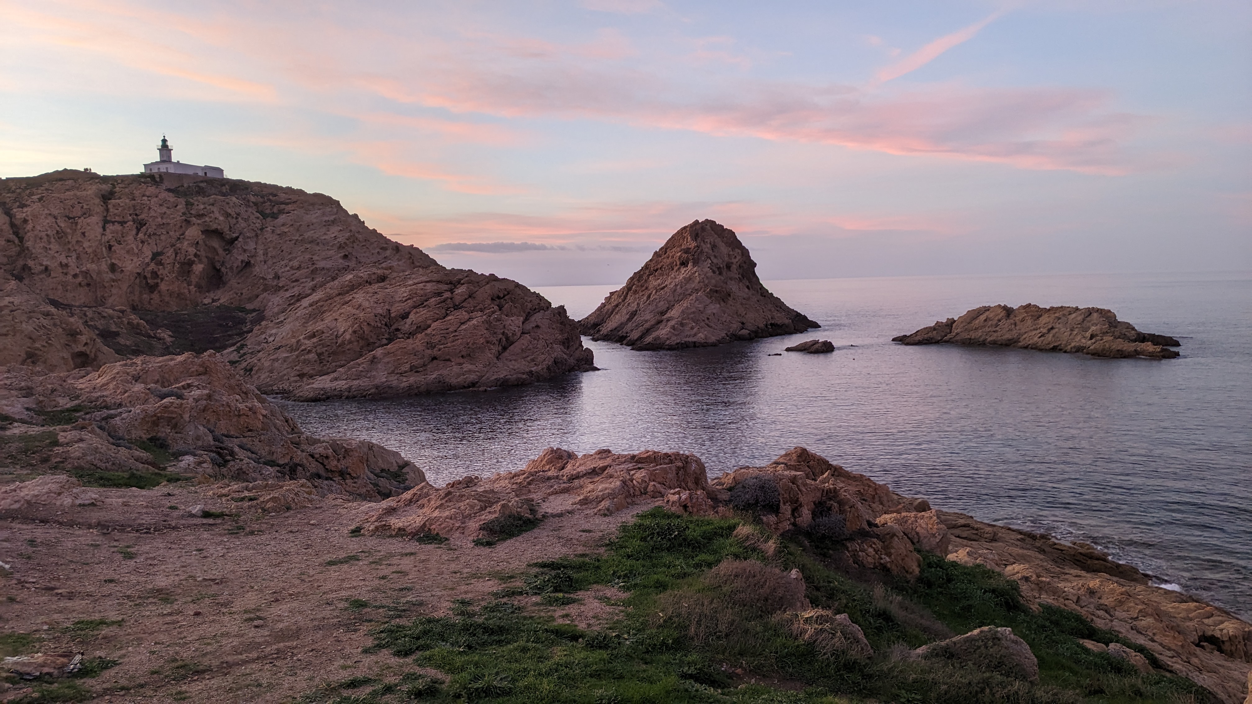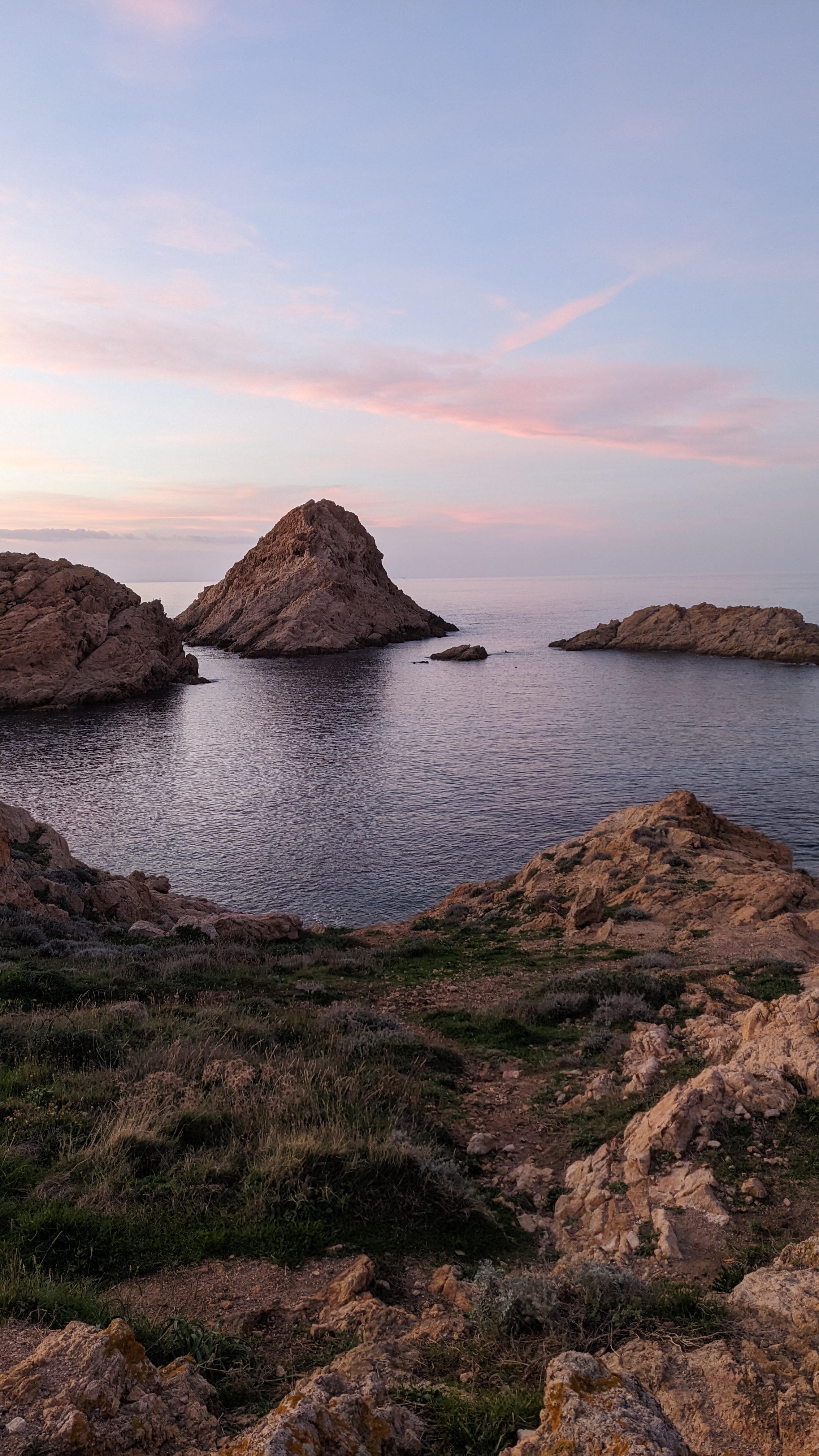 Couleurs de la mer et du rocher. Différents courants créent trois types de mer différents. Petit port à l'eau très transparente. Couchers de soleil de carte postale...